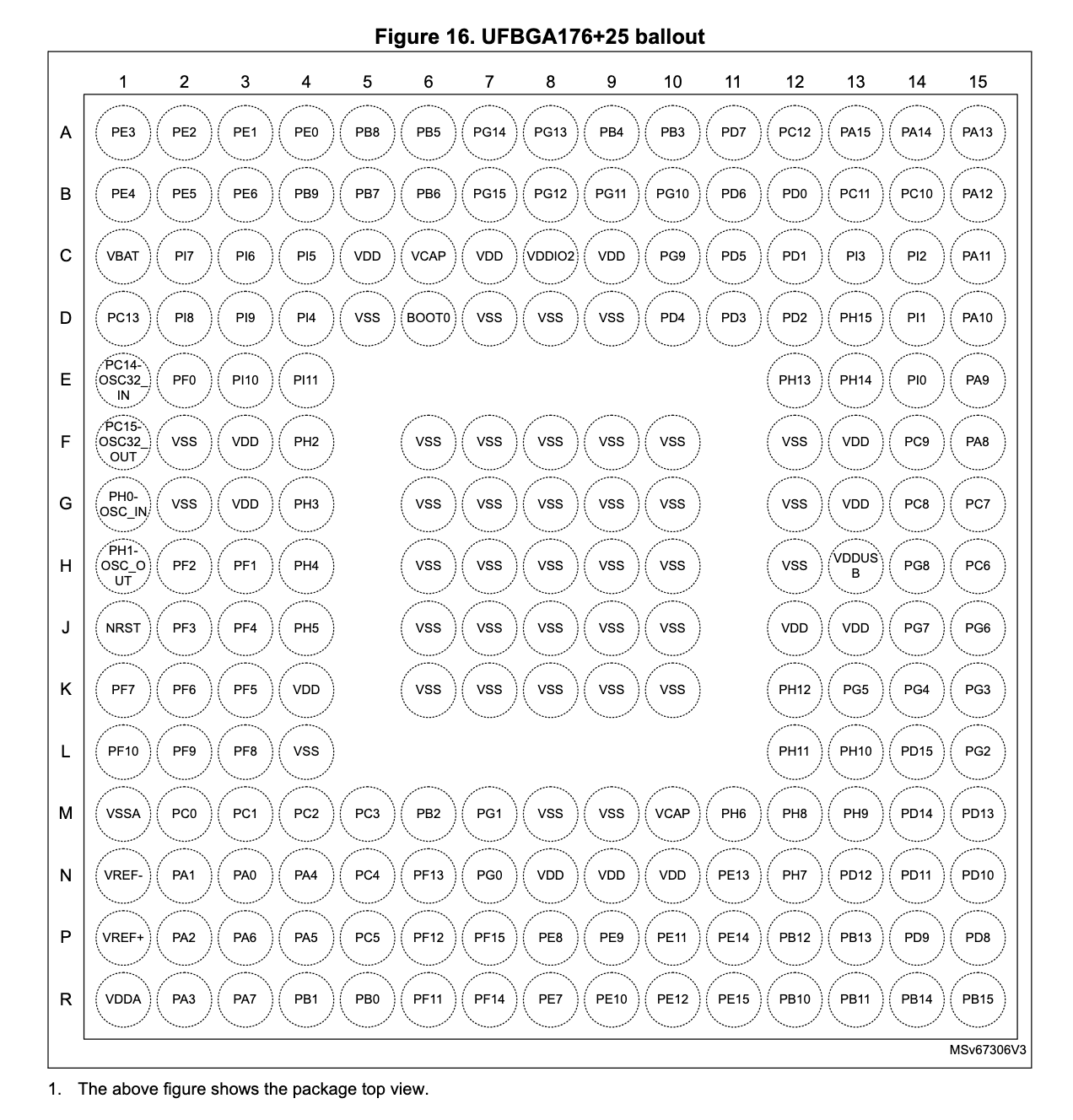 Each pin in the AFRH is assigned 4 bits, which in turn combine to give one of 16 AFs (0b0000-0b1111). We saw already in the table in the datasheet that we need AF7, so we we’ll set the value 0b0111 when we’re ready.