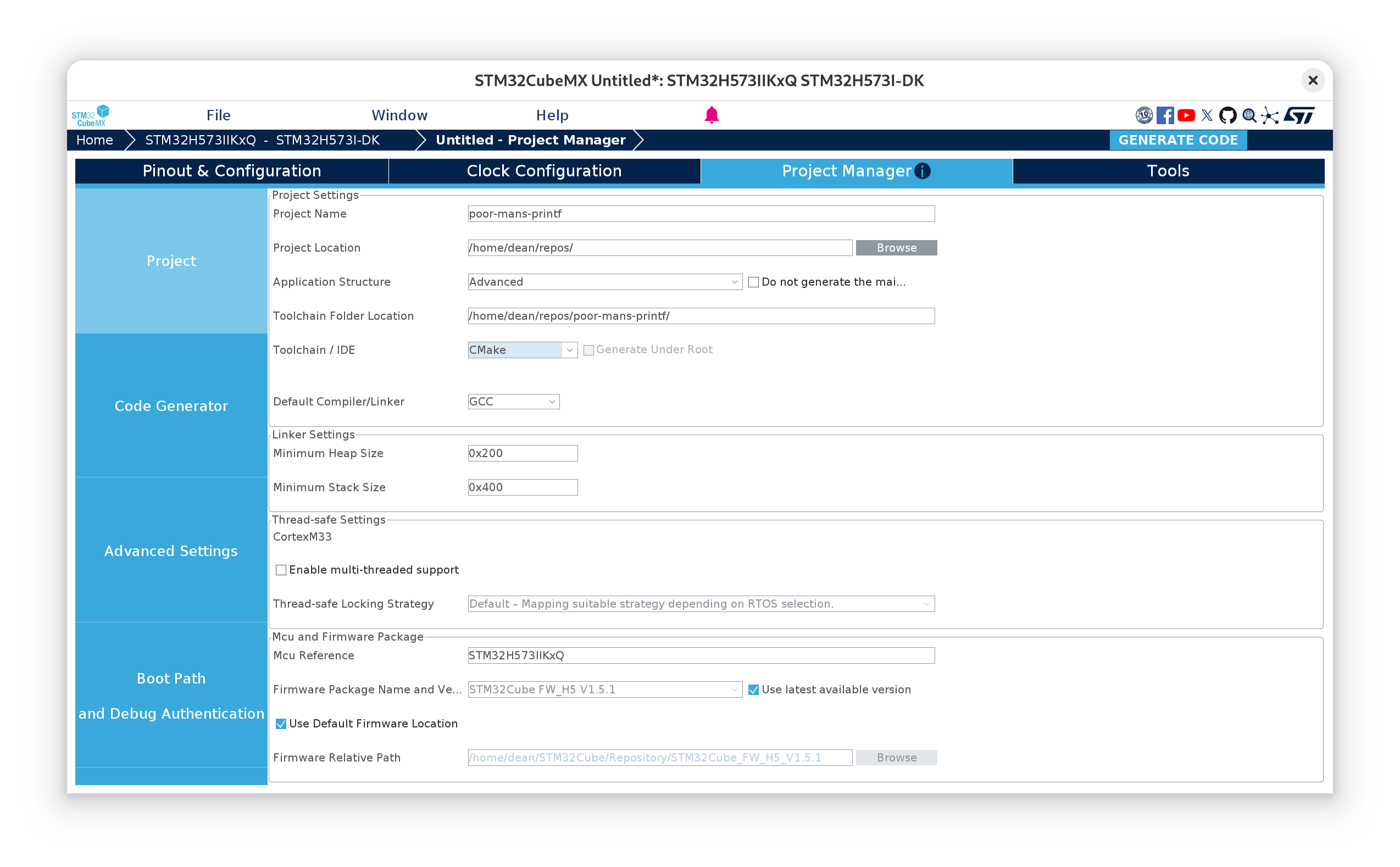 And there we have it, the simplest possible code we could write to transmit bytes through UART, through the STLINK debugger and into our terminal. And it all came it at 176B flashed to the device, a reduction of 99,4% of the code generated for us! Of course, we can’t do any fancy formatting, or receive characters, but who needs that right now anyway 😉