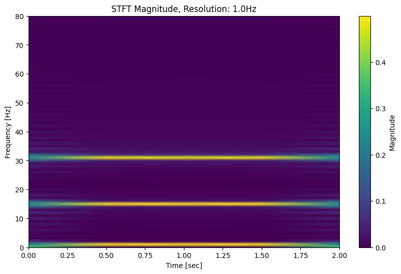 plt.title(f'STFT Magnitude, Resolution: Hz')